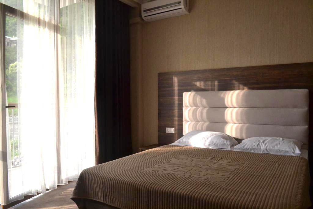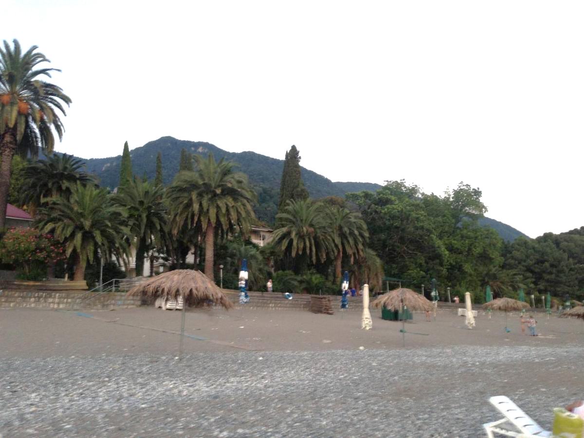 Отель «Пальма» расположен в одном из красивейших мест Абхазии, старой части города Гагры, среди пышной зелени. Рядом с гостиницей – эвкалиптовая аллея, а в 150 метрах – Черное море. Неподалеку находится всё, что нужно отдыхающим – магазины, кафе, рестораны, благодаря чему отель идеально подходит для насыщенного полноценного отдыха. Трехэтажный корпус гостиницы возвышается на фоне живописных гор. Отель располагает собственной территорией, огороженной и охраняемой. Во дворе гостиницы – кафе-столовая, места для отдыха, идеальный порядок и чистота, как и внутри здания. К услугам приезжих – беспроводной интернет Wi-Fi на территории. Гостей размещают в номерах категории «комфорт», из окон которых открывается вид на море или горы. В номерах есть телевизоры, холодильники и кондиционеры, удобная мебель, санузлы с душем. Городской пляж с галькой, доступный гостям отеля «Пальма», находится всего в 150 метрах. На берегу установлены шезлонги и лежаки.